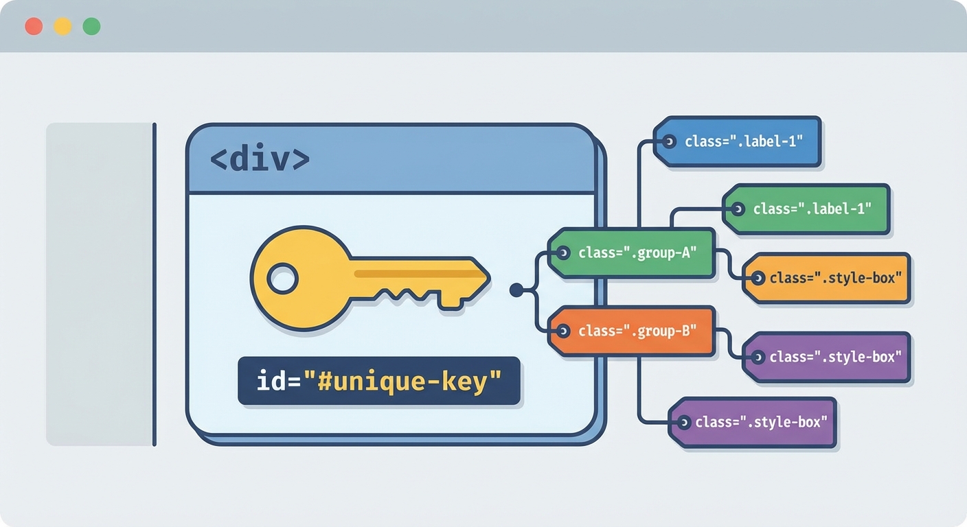 이전 글에서 Element(요소)가 웹페이지를 이루는 부품이라고 배웠습니다. 그런데 같은 종류의 부품이 한 페이지에 수십 개씩 있다면, 어떻게 서로 구별할 수 있을까요?